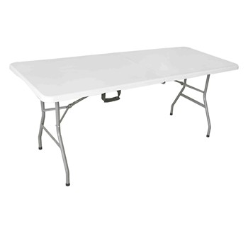 6ft ठोस स्टील फ्रेम एचडीपीई तालिका के शीर्ष पार्टी भोजन किराये प्लास्टिक तह आउटडोर टेबल